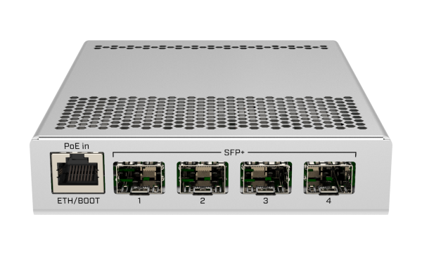 CRS305-1G-4S+IN je kompaktan, ali veoma moćan prekidač, sa četiri SFP+ porta, za do 10 Gbit po portu. Uređaj ima 1 Gbit bakarni eternet port za upravljački pristup ili redovno prosleđivanje saobraćaja i dva DC priključka za redundantnost napajanja. Uređaj ima veoma elegantno i kompaktno metalno kućište bez ikakvih ventilatora, za tihi rad.